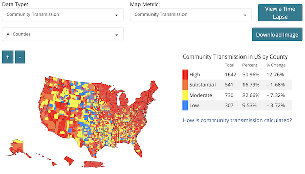 Here is CDC’s interactive map by county set to community transmission. This is the map CDC wants only hospitals to look at, not you: