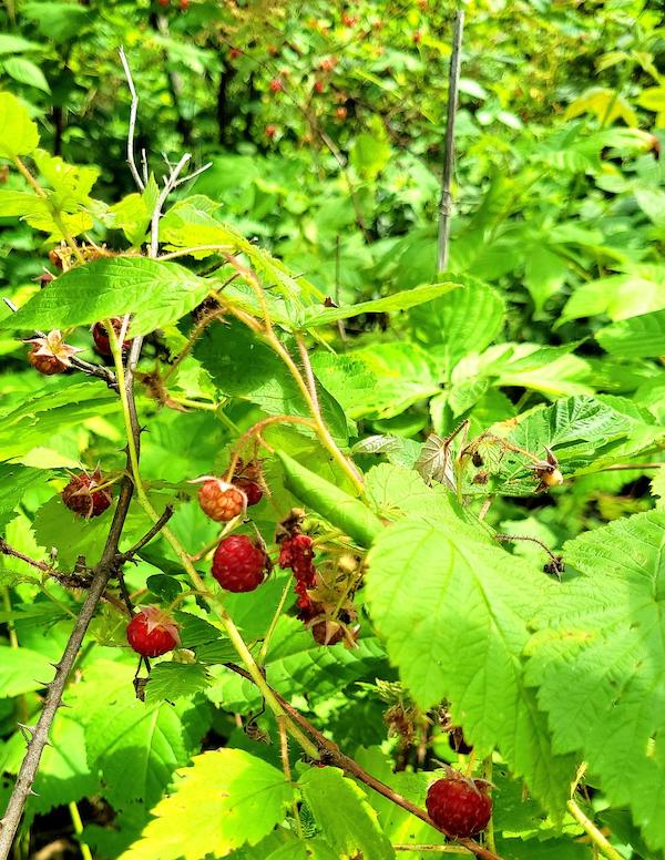 These are a lot of work to harvest, but here in North-central flyover, it’s peak raspberry season right now, with blackberries quickly following behind. The wild raspberries are tiny, maybe 1/2-1/3 the size of supermarket berries. The largest are found in thickets along wood-cuts, on slopes and hillsides near marsh, and on ground exposed to full to partial sunlight.