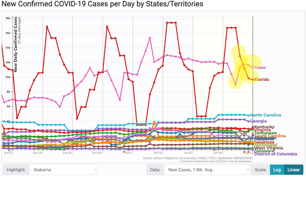 From the Walgreen’s test positivity tracker, August 3: