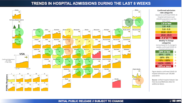 Hospitalization data, by state (CDC), August 3: