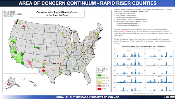 Rapid Riser data, by county (CDC), August 3:
