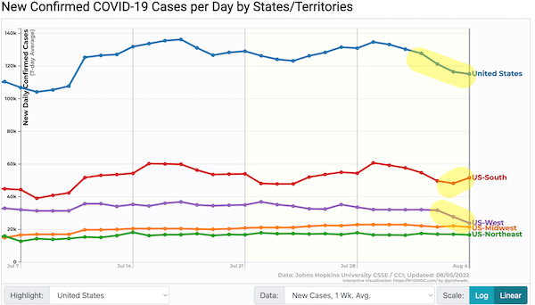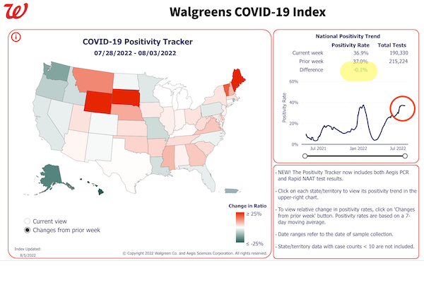 From the Walgreen’s test positivity tracker, August 3: