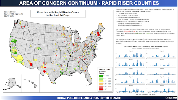 Rapid Riser data, by county (CDC), August 3: